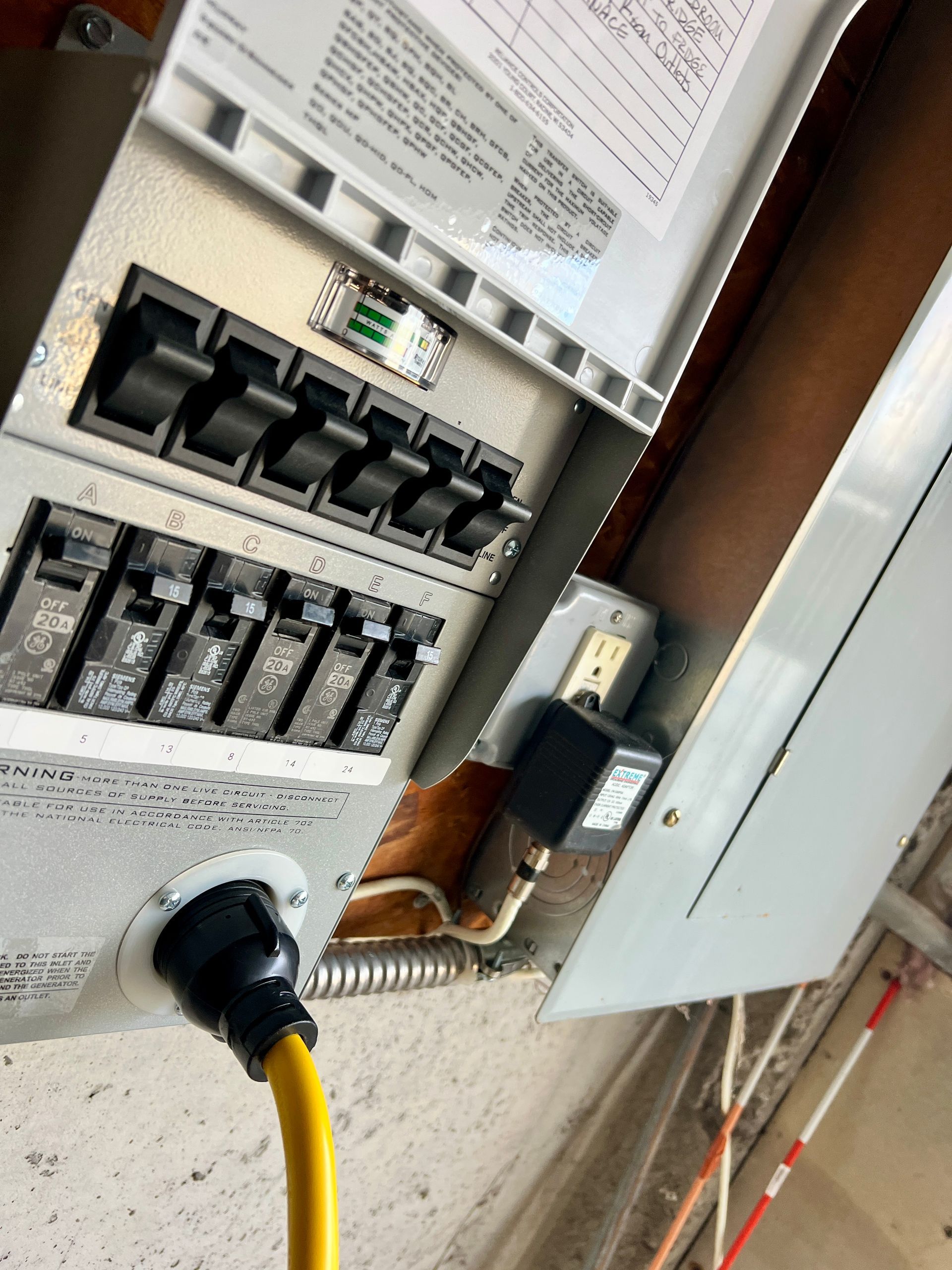 - Transfer switch installation